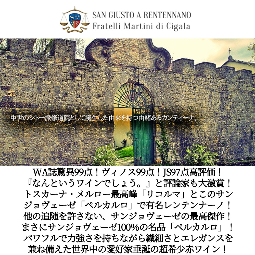 【商品名】ペルカルロ[2021]年・蔵出し品・サンジュースト・ア・レンテンナーノ元詰(マルティーニ・ディ・シガラ)・ワインアドヴォケイト誌驚異の99点(17年連続92-99点以上(2014年以外すべて95点以上))獲得&ヴィノス99点・自然派・ビオロジック・オーガニック(BIO認証)・IGTトスカーナ・サンジョヴェーゼ100%【英名】San Giusto A Rentennano Percarlo 2021 San Giusto a Rentennano (Martini di Cigala) Biologica (Organic) IGT
