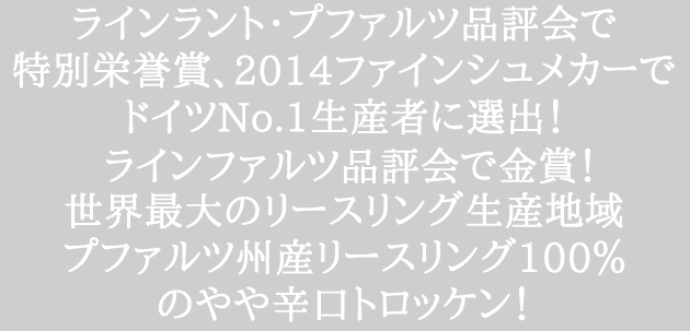 カール・ファフマン ヴァルシュハイマー シルバーベルグ シースリング トロッケン 2023年単一畑ヴァルシュハイマー・シルバーベルグのリースリングを使用。石灰岩を含む砂質ローム土壌畑は北西向きで標高160~180m、葡萄の平均樹齢は12年。酵は人口酵母を使用し、ステンレスタンクで16度にコントロールしながら約6週間行います。シルバーベルクの畑はトロピカルなニュアンスが特徴。柑橘類や青リンゴの香り。フレッシュで、黄色い果実の風味があります。畑からのミネラルも感じられる辛口白ワイン。