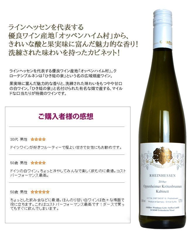 オッペンハイマー・クレーテンブルンネ・カビネット 2020年 ゲブリューダー・シュテッフェン社 750ml (ドイツ 白ワイン)