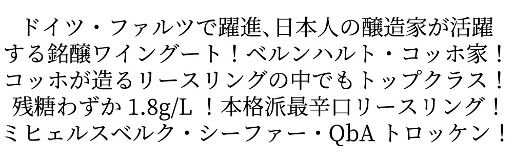 ミヒェルスベルク リースリング シーファー クーベーアー トロッケン 2020 ベルンハルト コッホ家元詰 ドイツ ファルツ