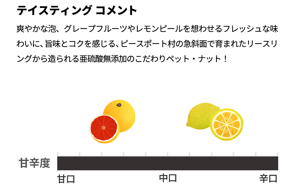 【商品説明】入手困難!年産5000本のみの希少アイテム!今、話題の人気急上昇中のナチュラルワインのジャンル「ペット・ナット」!モーゼルの老舗とポルトガル・ドウロの銘醸ワイナリーが自由な感覚で造るナチュラルワイン!しかもピースポート村の急斜面で育まれたリースリング100%で造られる亜硫酸無添加のペット・ナットがついに登場!ペットナット(「ペットナット」というちょっとユニークな呼び名のフルネームは「ペティヤン・ナチュレル(Petillant Naturel)」といい、「ペットナット(Pet-Nat)」は略称というわけです。) ポルトガル・ドウロ地方の銘醸「ニーポート」の当主ディルク・ニーポート氏、息子のダニエル・ニーポート氏、そしてモーゼル地方に5世代続くワイナリー「ローター・ケッタン」の当主フィリップ・ケッタン氏が2016年に立ち上げたジョイント・プロジェクト!ピースポート村ゴルトトレプフェンを中心とした畑から、それぞれの経験に根ざした自由な発想で、個性的なワインを生み出しています!ワイナリー設立のきっかけは、2008年にカリブ海で開催されたイベントでのディルク氏とフィリップ氏の出会いでした! モーゼルで自身の家族のワイナリー「ローター・ケッタン」を引き継いだフィリップ氏が、世界に名を馳せる天才的なワイン醸造家であるディルク氏から教えを受けるようになり、ローター・ケッタンを大きく再編成することになりました!平坦な地に所有していた畑を売却して斜面の畑に入れ替え、1,000リットルの大きな旧樽を購入してワイン醸造に活用し、ワインの熟成に長い時間をかけるようになったことで、よりテロワールを映し出したピュアなワインを造るようになりました!そんな交流の中、ディルク氏が「一緒にワインを造らないか」とフィリップに声を掛け、フィオ・ワインが生まれることになりました! ローター・ケッタンのワインはモーゼルの伝統を重視した古典的なスタイルですが、フィオ・ワインではルールにとらわれず、より自由な発想やアイデア、自分達のフィーリングを活かしたワイン造りを行っています(ピースポート村の急斜面で育まれた品質の高いブドウの味わいを素直に表現するため、フィオ・ワインでは出来る限り人的介入を控えた、ナチュラルなワイン造りを心がけています。ブドウ栽培とワイン造りでは、以下のようなこだわりを持ってワイン造りを行っています。)! この「ピウ・ピウ・ペット・ナット・NV」は、モーゼル地方の雄大な斜面の畑で育まれたリースリング100%で造られるペット・ナット!ピースポート村のスレート土壌の樹齢35~40年のサステナブル農法のリースリング種100%をメトド・アンセストラル方式/ステンレスタンク、オーク樽、瓶内熟成24~36ヶ月!野生酵母!残糖0.4g/Lの最辛口!ガス圧2.4気圧!ノンフィルター!清澄剤不使用!亜硫酸無添加(SO2不使用)!で瓶詰された究極ペット・ナット! 爽やかな泡、グレープフルーツやレモンピールを想わせるフレッシュな味わいに、旨味とコクを感じる、ピースポート村の急斜面で育まれたリースリングから造られる亜硫酸無添加のこだわりペット・ナット(弱発泡性スパークリングワイン)が限定で少量入荷!