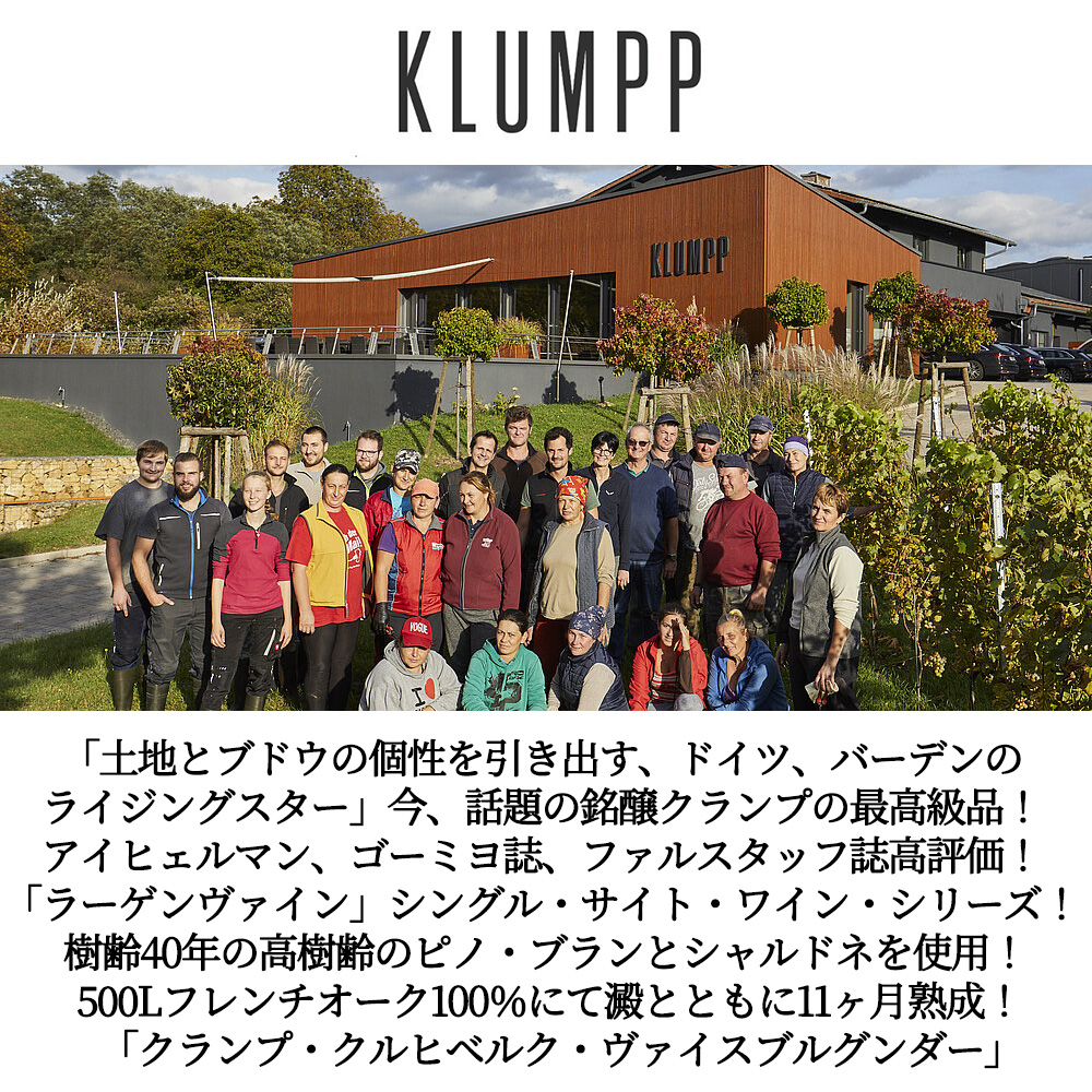 クランプ クルヒベルク ヴァイスブルグンダー 2020 蔵出し品 クランプ元詰 ドイツ バーデン gU.バーデン シュペートブルグンダー 白ワイン<br>KLUMPP Kirchberg Weissburgunder [2020] Baden