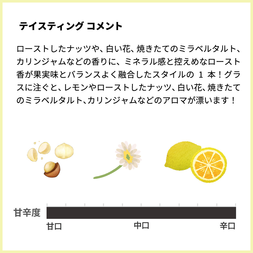 【商品説明】ドイツ・バーデン辛口白ワイン愛好家大注目!ヴァイスブルグンダーファン大注目!「土地とブドウの個性を引き出す、ドイツ、バーデンのライジングスター」近年高品質なピノ・ノワール (シュペートブルグンダー) を生み出す産地として注目を集めるドイツ、バーデン地方!そのバーデンの中でも、ドイツワインガイドにて最高評価や「ライジング・スター・オブ・ザ・イヤー」を受賞するなど高い評価を受けているのが、家族経営のワイナリー、クランプ! 1983年、ウルリッヒ・クランプ氏とマリエッタ・クランプ氏夫妻がガレージワイナリーとして創業し、現在は、長男のマルクス氏が醸造責任者、2010年には次男のアンドレアス氏が栽培責任者としてワイナリーを運営!1990年に新設したワイナリーへ移転すると、個性的なクライヒガウの環境を表現するためにはオーガニック農法が最善と考え、1992年にオーガニック栽培を開始!4年後にはすべての畑をオーガニック栽培に切り替え、エコヴィンのオーガニック認証を取得します!オーガニック栽培を中心とした取り組みが評価され、2002年には地区環境賞を受賞! 現在エコヴィンに加え、ユーロリーフのオーガニック認証も取得!また、それだけでなくビオディナミ農法を採用し、月の満ち欠けに合わせて作業を行い、自然由来の堆肥や肥料のみを使用!スギナやイラクサを抽出した自家製の「お茶」を畑に撒き、ブドウ樹の自己免疫力を強化するなど、ユニークな取り組みを行っています!クランプが所有するのは、標高約160~220m、年間降水量は600~750mm、面積25haの自社畑 (地殻変動に由来するユニークで多面性のある土壌が特徴で、泥灰土 (マール) 、貝殻石灰岩 (ムッシェルカルク) 、泥土岩 (コイパー) が狭い範囲で同時に見られます) ここから生み出されるワインは、豊かなアロマに、果実味としっかりとした酸がバランス良く溶け込んだスタイル! 2014年、ドイツのワインガイド『アイヒェルマン』にて、アウフシュタイガー・デス・ヤーレス (ライジング・スター・オブ・ザ・イヤー) を受賞!2020年には、『アイヒェルマン』の4つ星生産者に選出されるだけでなく、ゴーミヨ誌にてフィーア・トラウベン (ブドウ4房) 評価も獲得!2023年にはドイツ語圏のライフスタイル誌『ファルスタッフ』のワインガイドにて、4つ星生産者に選出! 今、話題のクランプが造る「ラーゲンヴァイン」と呼ばれる、単一区画の土壌や地理的特徴を、クライヒガウの主たるブドウ品種で表情豊かに表現したシングル・サイト・ワイン・シリーズの高級白ワイン!単一区画の特性を深く、的確に表現するため、樹齢40年の高樹齢のピノ・ブラン (ヴァイスブルグンダー) と、シャルドネを使用!クランプが追求するクライヒガウの「土壌×品種」の組み合わせの中でも、最高レベルの組み合わせにより生み出され、異なった色合いを持つそれぞれの組み合わせが万華鏡のように輝く、ワイナリーの最上級シリーズ! 畑は、風により堆積した石灰岩などのミネラルを豊富に含んだ、斜面に位置するレス土壌!早い段階で除葉を行い、理想的な日照量と適度な風通しを確保!枝ごとに一房だけ残し、それ以外は取り除くことで収量を抑えています!夜に森から吹く冷風により、この畑のブドウから造られるワインにはフレッシュさが備わっています!収穫は朝の涼しい時間に手摘み100%で行い、ブドウに負荷をかけないよう、機械は使わずに重力を用いて運搬!500Lのフレンチオーク100%にてアルコール発酵を実施!澱とともに11ヶ月熟成し、うち2ヵ月間は定期的にバトナージュを行っています! こうして生み出されるのは、ローストしたナッツや、白い花、焼きたてのミラベルタルト、カリンジャムなどの香りに、ミネラル感と控えめなロースト香が果実味とバランスよく融合したスタイルの1本!グラスに注ぐと、レモンやローストしたナッツ、白い花、焼きたてのミラベルタルト、カリンジャムなどのアロマが漂います! ワインアドヴォケイト誌驚異の92点でコメントは「ドイツには教会の数だけキルヒベルクの畑があるが、この畑はウンターヴィスハイムにある。ブーケはクリアで明るく、繊細でエレガントでありながら力強く、高貴な塩と樽香よりもイースト香が強い。口当たりはジューシーでエレガント、持続性のある力強さがあり、リッチだがエレガントな果実味、繊細なヘーゼルナッツのニュアンス、生き生きとしたミネラル感のある酸味、真面目なタンニンのストラクチャーがある。この16ヶ月で見事に成長したサステイナブルなワインだ。アルコール度数13%。天然コルク。」と高評価! 口当たりはジューシーかつまろやかで、ミネラル感と控えめなロースト香が、フレッシュな果実味とバランスよく融合!フィニッシュにはピュアで塩味を伴う余韻が続きます!濃厚で力強いスタイルが愉しめ、美しい芳香とフィネスを堪能できる1本!ドイツファン納得の究極辛口白ワインが限定で少量入荷!