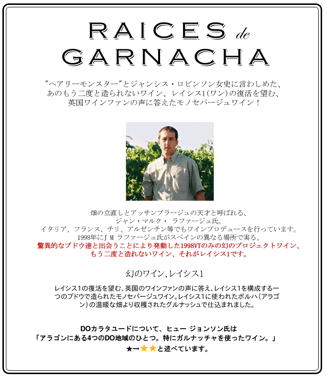 レイシス・デ・ガルナッチャ 2014年 D.O.カラタユード ボデガス・サン・アレハンドロ (赤ワイン・スペイン)