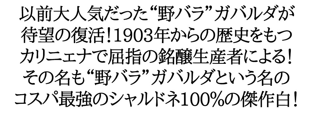 ![]() ボデガス ガバルダは、アラゴンの州都サラゴサの南45kmに位置します。ボデガス イグナシオ マリンが、以前ここでワイン造りをしていたボデガス ロマブランカから、畑や醸造設備をそのまま引継ぎワイン造りをしています。イグナシオ マリン家は、カリニェナで屈指の家族経営の生産者で、その歴史は1903年まで遡ることが出来ます。コストパフォーマンスの高さと品質へのこだわりが両立…ボデガス ガバルダはアラゴンの州都サラゴサの南45kmにあるカリニェナに位置します。ここは葡萄品種のカリニェナの原産地でもあります。以前ここでワイン造りをしていたボデガス ロマブランカから、地元の生産者が畑や醸造設備をそのまま引継ぎ、ワイン造りをしています。 ![]() 「乾燥して、寒暖差の激しい土壌が葡萄に最適」・・138haからなる葡萄畑は、大陸性の影響を受けた乾燥した気候で、冬は寒く、夏は非常に暑く、降雨量が少ないのが特徴です。土壌は、粘土と石灰質で非常に水はけがよく、葡萄の栽培に適しています。葡萄品種はテンプラニーリョ、ガルナッチャ、シラー、メルロ、シャルドネ等を栽培しています。畑の管理の重要性を重んじ、自然環境に配慮しながら、現代的な栽培技術を取り入れています。酵母は、天然酵母を使用しています。 ![]() 「品質向上のための収量制限」・・DOカリニェナの収量制限の規定では100hl/haのところ、通常の生産者は90hl/haくらいに制限していますが、ガバルダの場合、平均で60hl/haに低く制限し、品質を高めています。 「ガバルダとは、野バラのこと」・・この場所には大昔から、Gabarda (野バラの意)が自生していたことから、畑はGabardosa (野バラの土地)と呼ばれ、そこから出来るワインをGabardaと名付け、ラベルにも野バラを描いています。 ![]() 創始者であるイグナシオ マリンの時代から、代々引き継いできた技術と経験を、新たなプロジェクトとなるボデガス ガバルダでの葡萄栽培からワインの醸造までに生かしています。95haからなる葡萄畑は、大陸性の影響を受けた乾燥した気候で、冬は寒く、夏は非常に暑く、降雨量が少ないのが特徴です。土壌は、粘土と石灰質で非常に水はけがよく、葡萄の栽培に適しています。葡萄品種は、テンプラニーリョ、ガルナッチャ、シラー、メルロ、シャルドネ等を栽培しています。畑の管理の重要性を重んじ、自然環境に配慮しながら、現代的な栽培技術を取り入れています。 ![]() この場所には大昔から、“Gabarda” (ガバルダ、野バラの意味)が自生していたことから、畑はGabardosa=野バラの土地 と呼ばれ、そこから出来るワインをGabardaと名付け、ラベルにも描かれています。 |