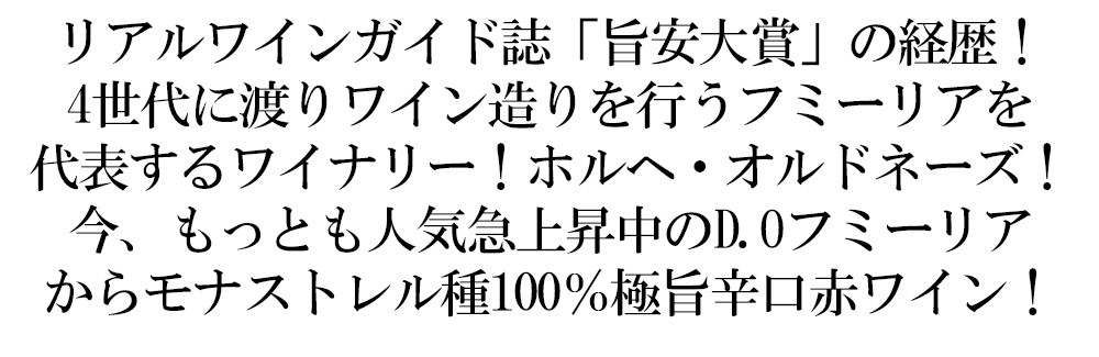 ![]() ボデガス・フォアン・ヒルは、1916年にフォアン・ヒル・ヒメネスによって設立され、4世代に渡りワイン造りを行うフミリアを代表するワイナリーです。4代目ミゲル・ヒルは、アメリカでインポーターを営むホルヘ・オルドネス主導のもと、パートナーとして現場指揮を行い「オノロ・ベラ」ブランドをリリースしました。現在はヒルファミリーが統括生産しています。 ![]() 今後、「イントルソ」と名前を変えイメージを一新。「侵略者」を意味し、そのあまりのコストパフォーマンスに市場を侵略していくワインという意味合いを込めています。 |