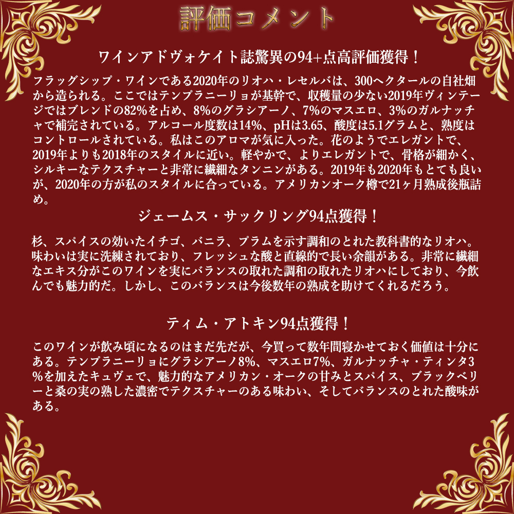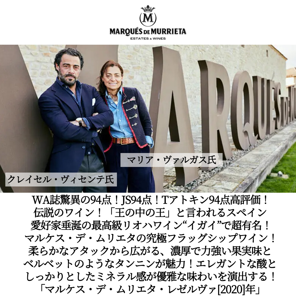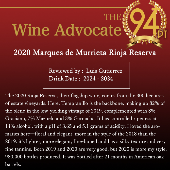 マルケス デ ムリエタ レゼルヴァ 2020 蔵出し品 ワインアドヴォケイト誌驚異の94+点&JS94点&ティム アトキン94点高評価 Marques de Murrieta Reserva 2020 Spain Rioja