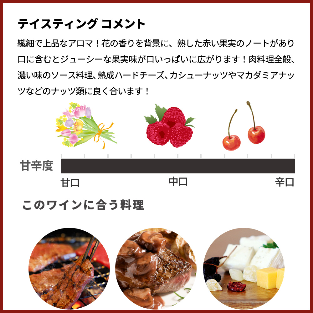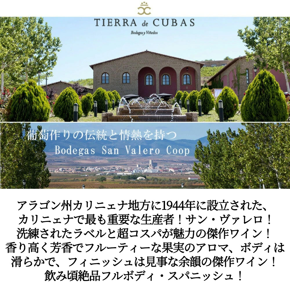 【商品説明】高級スペイン・フルボディ辛口赤ワイン愛好家大注目!超コスパが魅力の傑作スパニッシュ!しかも高級DO原産地認定のフルボディ極旨辛口赤ワインがお買い得価格で登場! 造り手のボデガス・サン・バレロは、アラゴン州カリニェナ地方に1944年に設立された、カリニェナで最も重要なワイナリーの一つ!500ものワイン生産者達からなる共同組合で、現在スペインに約4,000ヘクタールのブドウ園を所有する協同組合「ボデガス・サン・ヴァレロ」!葡萄作りの伝統と情熱を持つ協同組合として、安定した美味しさ、コストパフォーマンスの良さが評判を呼び、世界中に輸出しているスペインを代表するワイナリーの一つ!改革、伝統の尊重、そして醸造の卓越性!これがボデガス・サンバレロが大切にしているキーポイント!75年以上の伝統的なノウハウと最新の生産管理技術が融合させて造られる彼らの自慢のワインは、スペイン国内だけでなく世界へと輸出され、愛されています! 標高700mに位置する葡萄畑の近くに醸造所を持ち、葡萄の収穫後、すぐに醸造することで高品質なワインが造られています!元々葡萄栽培には優れたDOで少雨、乾燥地帯でありながら、ピレネーからの乾燥した北風「シエルソ」が吹き夏は38度を超える日もあり、冬は5度に満たない日もある極端な大陸性気候で日中と夜間の寒暖差も激しく、葡萄栽培にうらやましい程恵まれたD.O.P・カリニェナ (18世紀後半、世界の葡萄は害虫のフィロキセラに壊滅的な被害をもたらされたが、カリニェナにフィロキセラが訪れたのはフィロセキラ耐性技術が確立された後。全世界、特にフランスの壊滅が重篤化する中で、葡萄の供給源となり、アラゴン全体のなんと50%が葡萄園となった名産地。1887年に葡萄鉄道カリニェナからサラゴサ間の鉄道が開通され、サラゴサからヨーロッパ全土に大量の葡萄が供給されていった。フィロキセラ時代は救世主となりワイン文化維持に大貢献をした。元々葡萄栽培には優れたDOで少雨、乾燥地帯でありながら、ピレネーからの乾燥した北風「シエルソ」が吹き、極端な大陸性気候で、日中と夜間の寒暖差も激しく、葡萄栽培にうらやましい程恵まれたDO。) ! この“モンフィル・ガルナッチャ[2024]年”は、厳選ガルナッチャ100%使用!ガーネット色とスミレ色をあわせ持つ魅力的なチェリーレッドの色合い!繊細で上品なアロマ!花の香りを背景に、熟した赤い果実のノートがあり口に含むとジューシーな果実味が口いっぱいに広がります!心地よいタンニンとエレガントなフィニッシュを感じる極旨フルボディ辛口赤ワイン!肉料理全般、濃い味のソース料理、熟成ハードチーズ、カシューナッツやマカダミアナッツなどのナッツ類に良く合います!