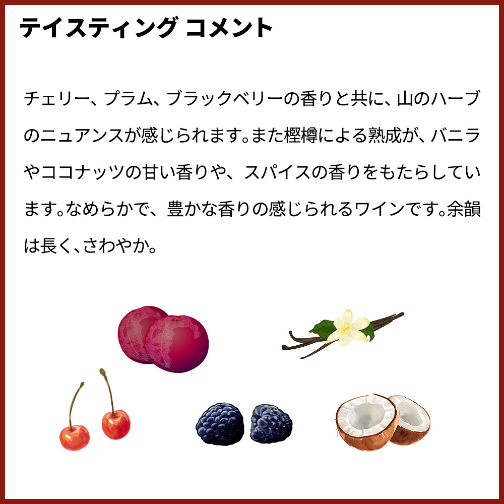 【商品説明】カンポビエホはリオハとスペインのワイン造りにおいて、世界で最も評価されるトップ50ブランドの一つです。その特有の気候と地質的特徴により、ワイン栽培やワイン醸造に理想的な場所となっています。リオハの領土はエブロ川の両岸に約100kmに及び、リオハアルタ、リオハオリエンタル、リオハアラベサの3つの主要なサブリージョンに分かれています。 このカンポ・ヴィエホ・テンプラニーリョは、活き活きとしたチェリーレッドの色合い。チェリー、プラム、ブラックベリーの香りと共に、山のハーブのニュアンスが感じられます。また樫樽による熟成が、バニラやココナッツの甘い香りや、スパイスの香りをもたらしています。なめらかで、豊かな香りの感じられるワインです。余韻は長く、さわやか。