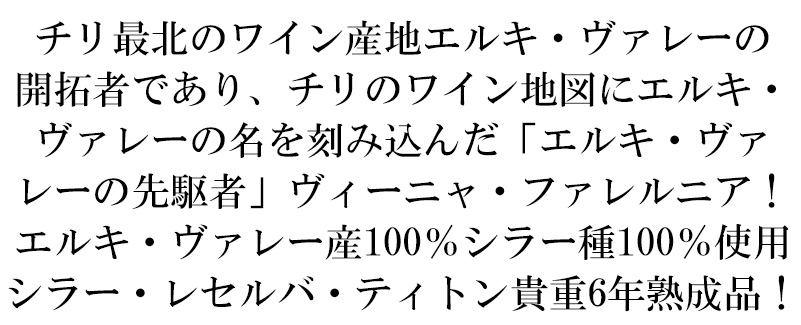 ビーニャ ファレルニア シラー レセルバ ティトン シングル ヴィンヤード 2019 エルキ ヴァレー フルボディ 赤
