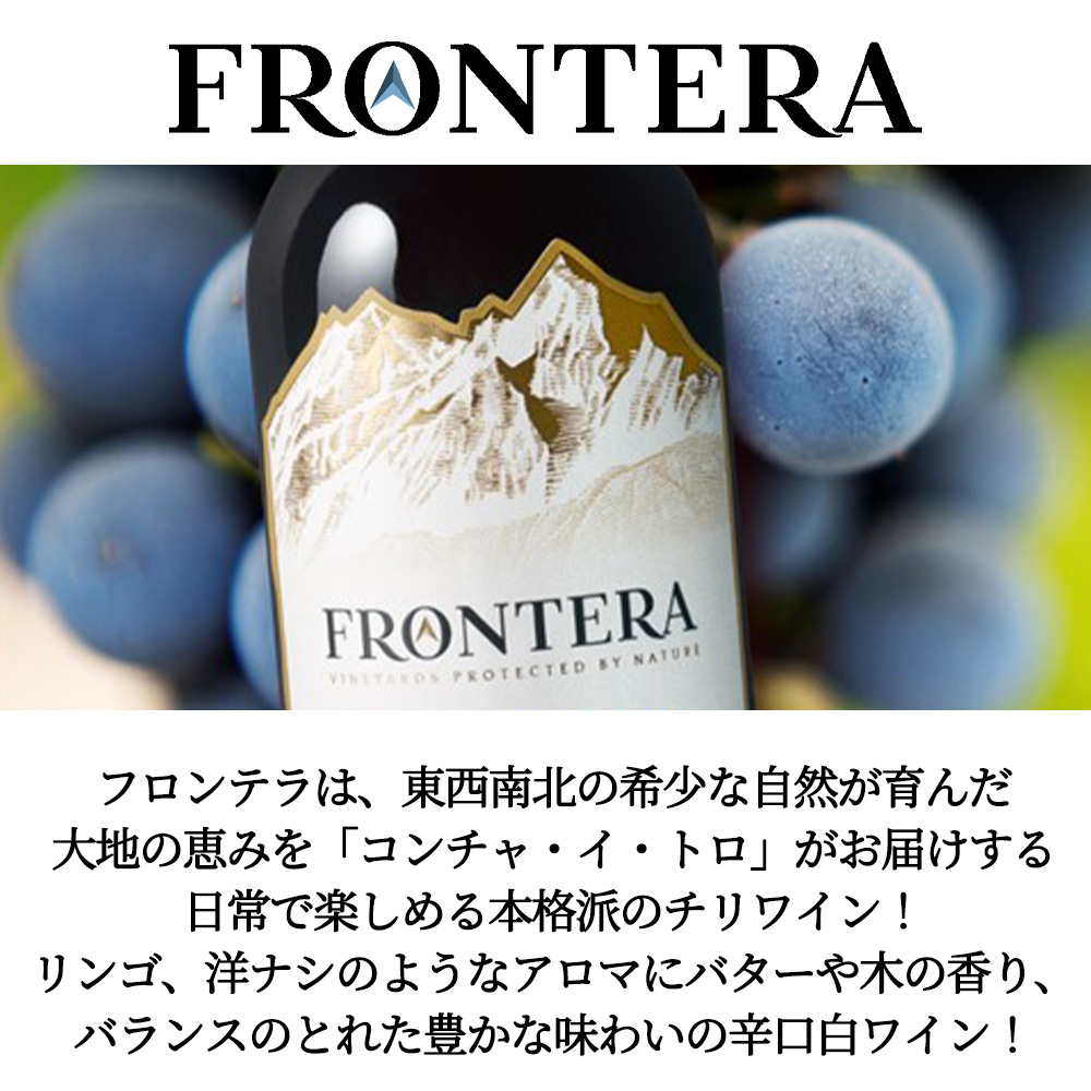 【商品名】フロンテラ ワインフレッシュサーバー カベルネ ソーヴィニヨン コンチャ イ トロ BIB 3000ml バッグインボックス 【英名】Frontera Wine Fresh Server Chardonnay 【商品説明】フロンテラは、東西南北の希少な自然が育んだ大地の恵みを「コンチャ・イ・トロ」がお届けする、日常で楽しめる本格派のチリワイン。フレッシュサーバーは750mlが4本分、開栓後も1カ月はおいしくいただけます。リンゴ、洋ナシのようなアロマにバターや木の香り、バランスのとれた豊かな味わいの辛口白ワインです。 【タイプ】白・辛口 【生産者】コンチャ・イ・トロ / Concha y Toro 【生産地】チリ 【品種/セパージュ アッサンブラージュ】シャルドネ 85%、その他 15% 【内容量】3000ml 【注意文】4973480328819 【JANコード】0600004001807