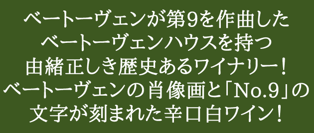 ![]() ![]() オーストリアの首都ウィーンにある、1683年設立の歴史あるワイナリー。立地に恵まれた畑を所有していることに加え、最新技術の導入など品質向上に努める彼らのワインは、国内で数々の賞を獲得するなどその高品質が高く評価されています。 ![]() ![]() また、ベートーヴェンが住み、あの第九を作曲した家屋「ベートーヴェンハウス」がワイナリーの敷地内にあり、ウィーンを代表するホイリゲでもあるマイヤーは、世界各国からの観光客で賑わっています。 |