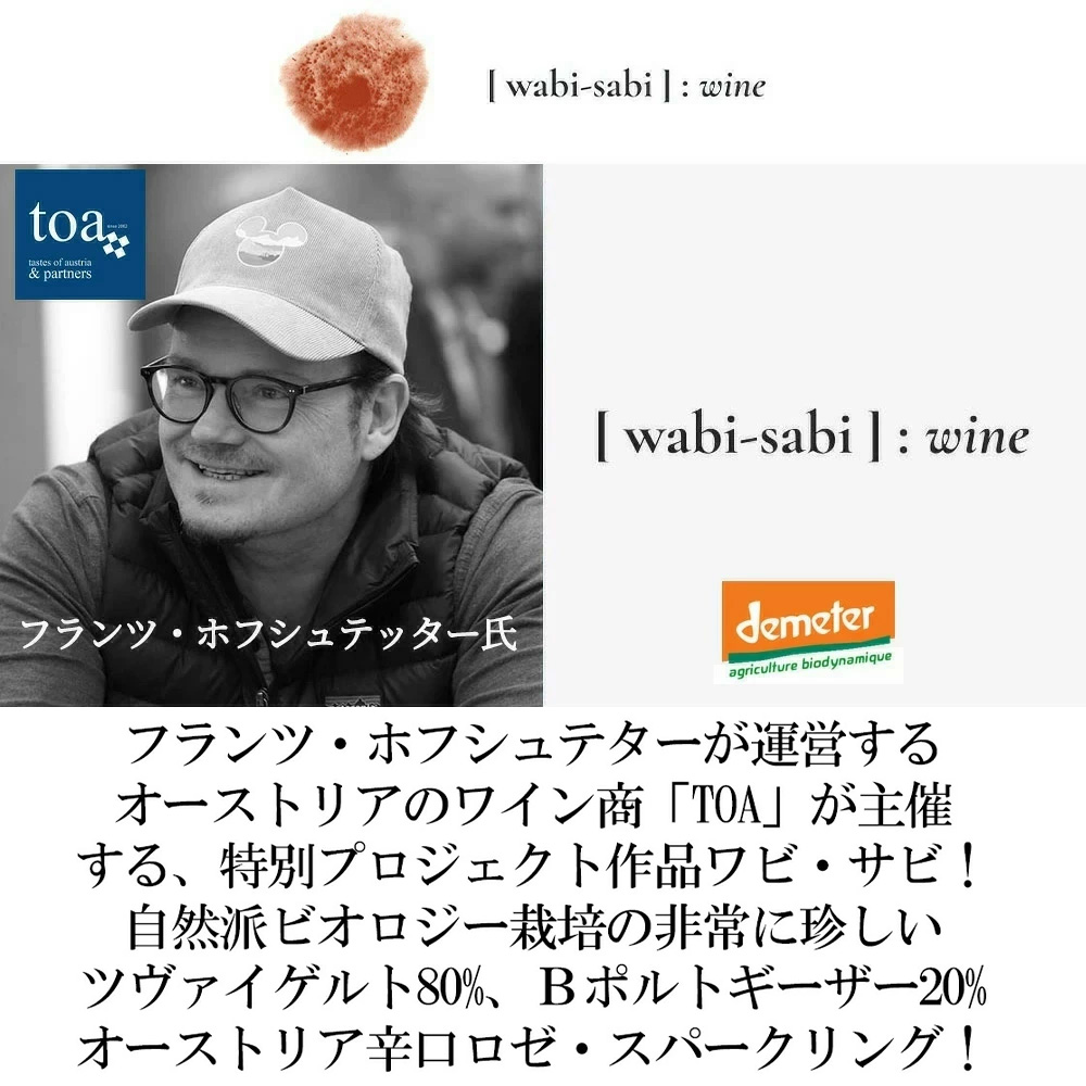 ワビ サビ サクラ NV 750ml TOAフランツ ホフシュテター 自然派ビオロジー栽培のツヴァイゲルト80% ブラウアー ポルトギーザー20%で造られる スパークリング ロゼワイン wabi-sabi sakura NV TOA(Tastes of Austria)
