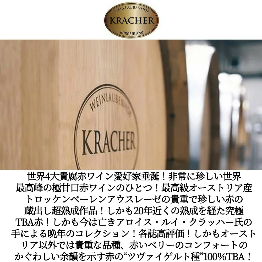 【商品名】クラッハー・コレクションNo.4・ツヴァイゲルト・トロッケンベーレンアウスレーゼ・ヌーヴェル・ヴァーグ[2007]年・アロイス・クラッハー元詰・パーカー5つ星&ワインスペクテイター誌驚異の90点&ファルスタッフ誌驚異の92点獲得・新樽100%バリックで発酵&22ヶ月熟成・珍しい赤のTBA・赤ワイン・極甘口・アルコール度7.5%・残糖度驚異の残糖度250.6g/l・希少19年熟成作品【英名】KRACHER Collection No.4 Zweigelt Trockenbeerenauslese Nummer 4 Nouvelle Vagne 2007 Alois Kracher