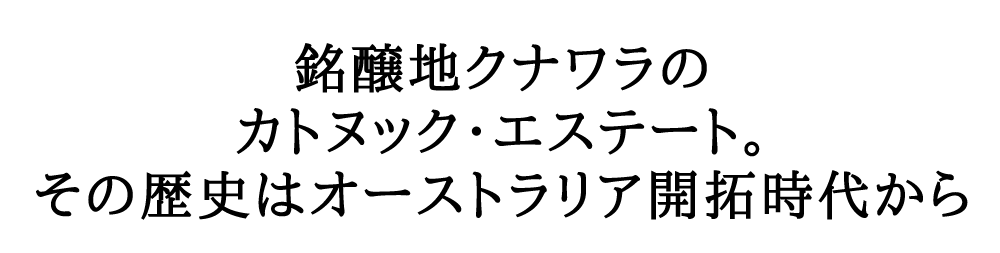 1867年、スコットランド人開拓者のジョン・リドックによって、先住民アボリジニの言葉で「豊饒な大地」を意味する“カトヌック”に羊小屋が建てられました。銘醸地クナワラにおけるワイン造りはここから始まりました。1867年、スコットランド人開拓者のジョン・リドックによって、先住民アボリジニの言葉で「豊饒な大地」を意味する“カトヌック”に羊小屋が建てられました。銘醸地クナワラにおけるワイン造りはここから始まりました。カトヌック・エステートのワインが初めてリリースされたのは1980年のことですが、ジョン・リドックによってワイン造りが行われた羊小屋は今も残されています。現在は改修が施され、カトヌック・エステートのビジターセンターとして使用されています。