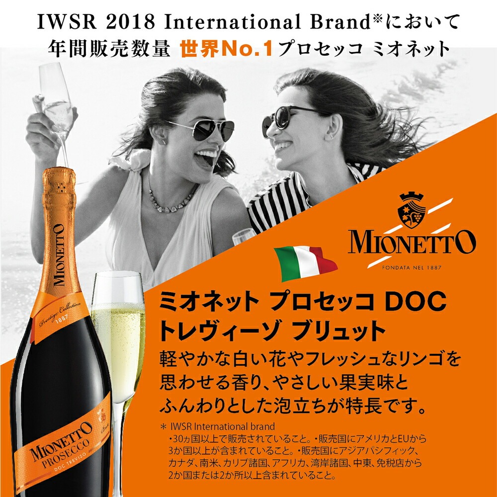 【専用箱入り】ミオネット プロセッコ ブリュット DOCトレヴィーゾ 750ml スパークリングワイン 辛口 イタリア Mionetto Prosecco Brut D.O.C Treviso Sparkling Gift BOX