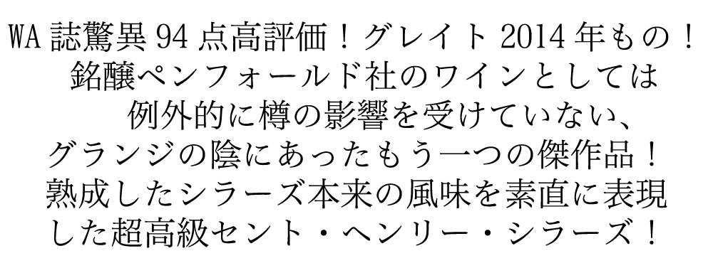 【専用箱入】ペンフォールド セント ヘンリー (アンリ) シラーズ 2014 ペンフォールド社 正規代理店輸入品