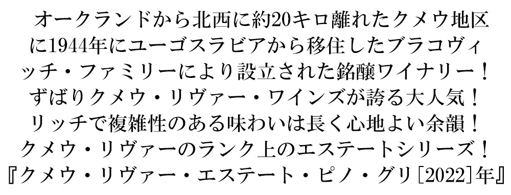 クメウ リヴァー エステート ピノ グリ 2022 ピノ グリ種100% クメウ リヴァー ワインズ リミティッド元詰 ブラコヴィッチ家 正規品