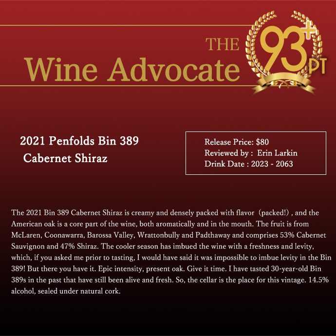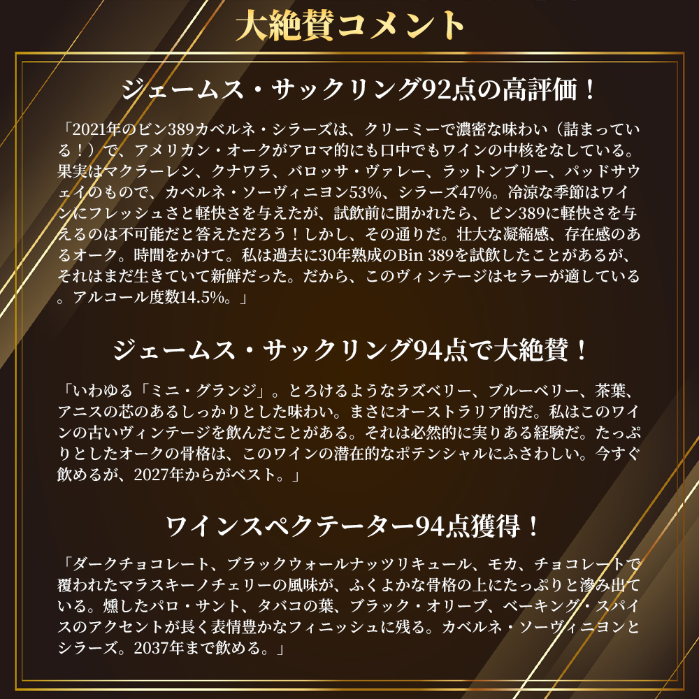 【商品名】【箱入】ペンフォールド・BIN(ビン) 389・カベルネ・シラーズ[2021]年・ペンフォールド社・正規代理店輸入品・ワインアドヴォケイト驚異93+点&ジェームス・サックリング94点&ワインスペクテーター94点【英名】Penfolds Bin 389 Cabernet Shiraz 2021