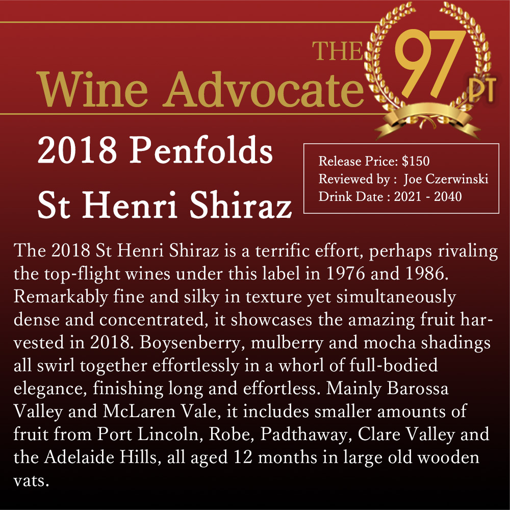 【商品名】【豪華箱入】ペンフォールド・“セント・ヘンリー(アンリ)”・シラーズ[2018]年・ペンフォールド社・ワインアドヴォケイト誌驚異97点&ジェームス・サックリング99点&ジェームス・ハリディ97点・正規代理店輸入品【英名】Penfolds St.Henri Shiraz 2018