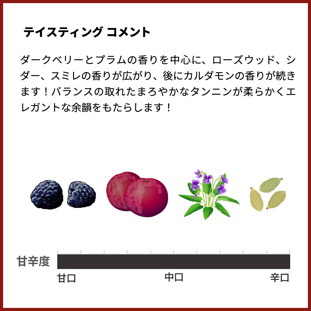 【商品説明】チャーチロードは1897年に製造を開始!ホークスベイ地方で最高の立地にブドウ畑を持つワイナリーです! 1851年に最初のブドウ畑が造られたホークスベイは、ニュージーランド最古かつ第二の規模を誇るワイン産地!ボルドーに似た海洋性気候と、長く日照に恵まれた生育期を持ち、国内最高峰のワインを生産する産地として国際的に高い評価を得ている!カベルネやメルローのブレンド、シラー、シャルドネで国際的に認められているほか、ピノ・ノワールや芳香系の白ワインも素晴らしい例として生産されています! ホークスベイの開拓者、トム・マクドナルドに敬意を表して名付けられたチャーチロードTOMワインは、類まれな美しさを誇る逸品です!チーフワインメーカーのクリス・スコットの監督のもと、優れたヴィンテージのみに生産されるこれらのワインは、職人技への私たちの情熱の頂点であり、過去100年にわたり蓄積されてきたブドウ栽培とワイン醸造の専門知識の集大成です! ダークベリーとプラムの香りを中心に、ローズウッド、シダー、スミレの香りが広がり、後にカルダモンの香りが続きます!バランスの取れたまろやかなタンニンが柔らかくエレガントな余韻をもたらします!