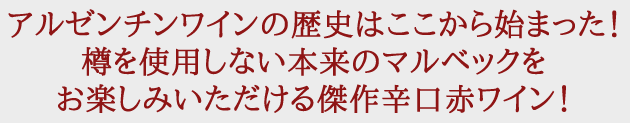 ![]() ロス・カルドス マルベック 2019年 ヴィーニャ・ドニャ・パウラドニャ・パウラでもっとも歴史のある畑、ウガルテックのマルベックを使用。ウガルテックは標高900メートルから1000メートルの高地にあり、アルゼンチンワインの歴史はここから始まりました。ドニャ・パウラが最初に手掛けた畑はこのウガルテック地区。著名なワイナリーがここに集まります。ウガルテックは石灰を含んだ粘土質を中心とした土壌です。黒いフルーツに黒コショウのスパイシーな香り。タンニンが柔らかく、樽を使用しない本来のマルベックをお楽しみいただける辛口赤ワイン。 |