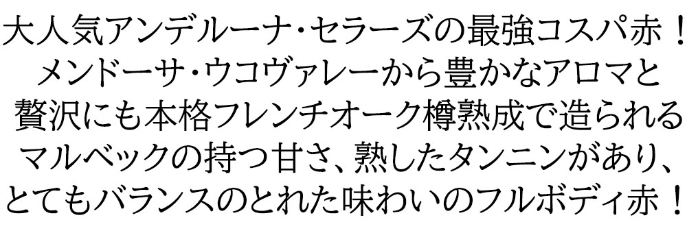 アンデルーナ マルベック 2022 アンデルーナ セラーズ元詰 アルゼンチン メンドーサ 赤 フルボディ 辛口
