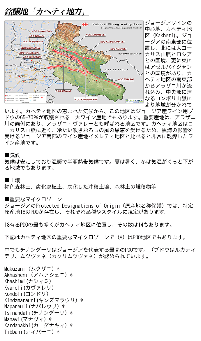 ![]() 1982年設立のヴァジアニ・カンパニーは、ジョージア固有の伝統的なワイン造りを守り続けるワイナリーです。2012年にはジョージア最古のワイン産地カヘティ地区、テラヴィに近代的な醸造所を構えました。カヘティ地区は多様な気候と肥沃な土壌が広がり、ブドウに特徴的なアロマと風味を与えることからジョージアで最も栽培面積の大きい重要なワイン産地となっています。 ![]() ヴァジアニ・カンパニーは、カヘティ地区において最先端の設備を誇る醸造所で、テロワールを見事に表現したワインを生み出し、国際舞台で高い評価を獲得してきました。ヴァジアニの代表ブランドは、ジョージアで採掘される土で焼かれた大きな容器「クヴェヴリ」を地中に埋め、自然の力だけを利用して仕込まれる「マカシヴィリ・ワイン・セラー」シリーズです。世界最古のワイン産地(その歴史は8000年以上も前)として知られるコーカサス地方の小国ジョージアは、このクヴェヴリを使用したワイン醸造がユネスコ世界無形文化遺産にも登録されています。 ![]() マカシヴィリ・ワイン・セラーは、ヴァジアニ・ワイナリーの施設の中にある醸造所(マラニ)で古い歴史を誇ります。その歴史は、15世紀後半のカヘティ地区の貴族マカシヴィリ家から始まりました。そして、19世紀後半のジョージアでは貴族による様々なスタイルのワイン造りが花開きました。中でもクヴェヴリを使用したワイン造りに秀でた技術をみせたのが、ヴァジアニ・カンパニーの創設者の祖先でもある、マカシヴィリ王子です。マカシヴィリ王子のワインは1888年から醸造され、その伝統と技術が今に伝えられています。ヴァジアニ・カンパニーが所有する醸造施設は2012年に再建されましたが、以前のワイナリーは20世紀前半、旧ソビエトの共産党が誕生した後に建設されています。そして再建の際、この古いワイナリーの地中から200もの古いクヴェヴリが発見され、損傷の少ない40のクヴェヴリを再生利用することができました。これらクヴェヴリは120年以上も前に作られ、現代の物とは異なり、ヴァジアニが信じる蜜蝋無加工の大変貴重なものです。マカシヴィリ・ワイン・セラー シリーズは、これら貴重なクヴェヴリを用い、ジョージアの固有品種ルカツィテリ、サペラヴィ、キシィ、ムツヴァネ、ヒフヴィや国際ブドウも使用し醸造を行っています。そして、ジャパン・ワイン・チャレンジ2017年では最優秀ジョージア白ワイン賞「トロフィ」を受賞しました。その他、世界各国のコンペティションでも多くの賞を受賞してきました。 |
