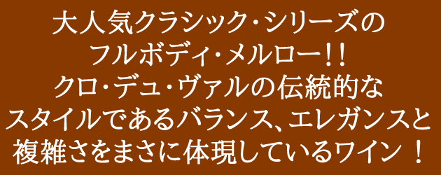 クロ・デュ・ヴァル クラシック・シリーズ ナパ・ヴァレー メルロー 2013年 750ml (アメリカ カリフォルニア 赤ワイン)