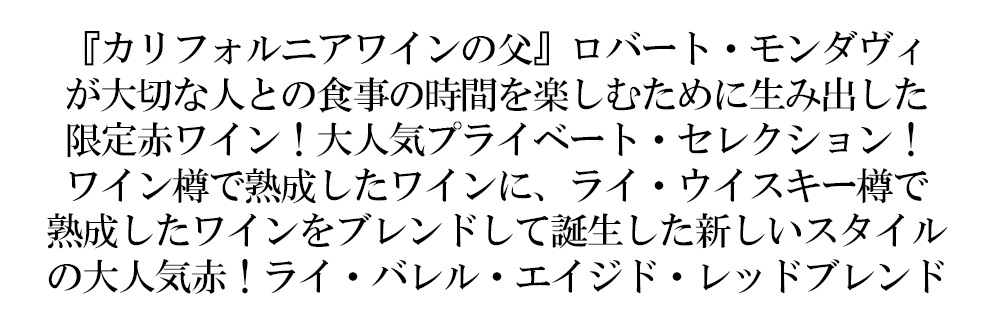 ロバート・モンダヴィ プライベート・セレクション ライ・バレルエイジド レッドブレンド 2021年 750ml (アメリカ カリフォルニア 赤ワイン)