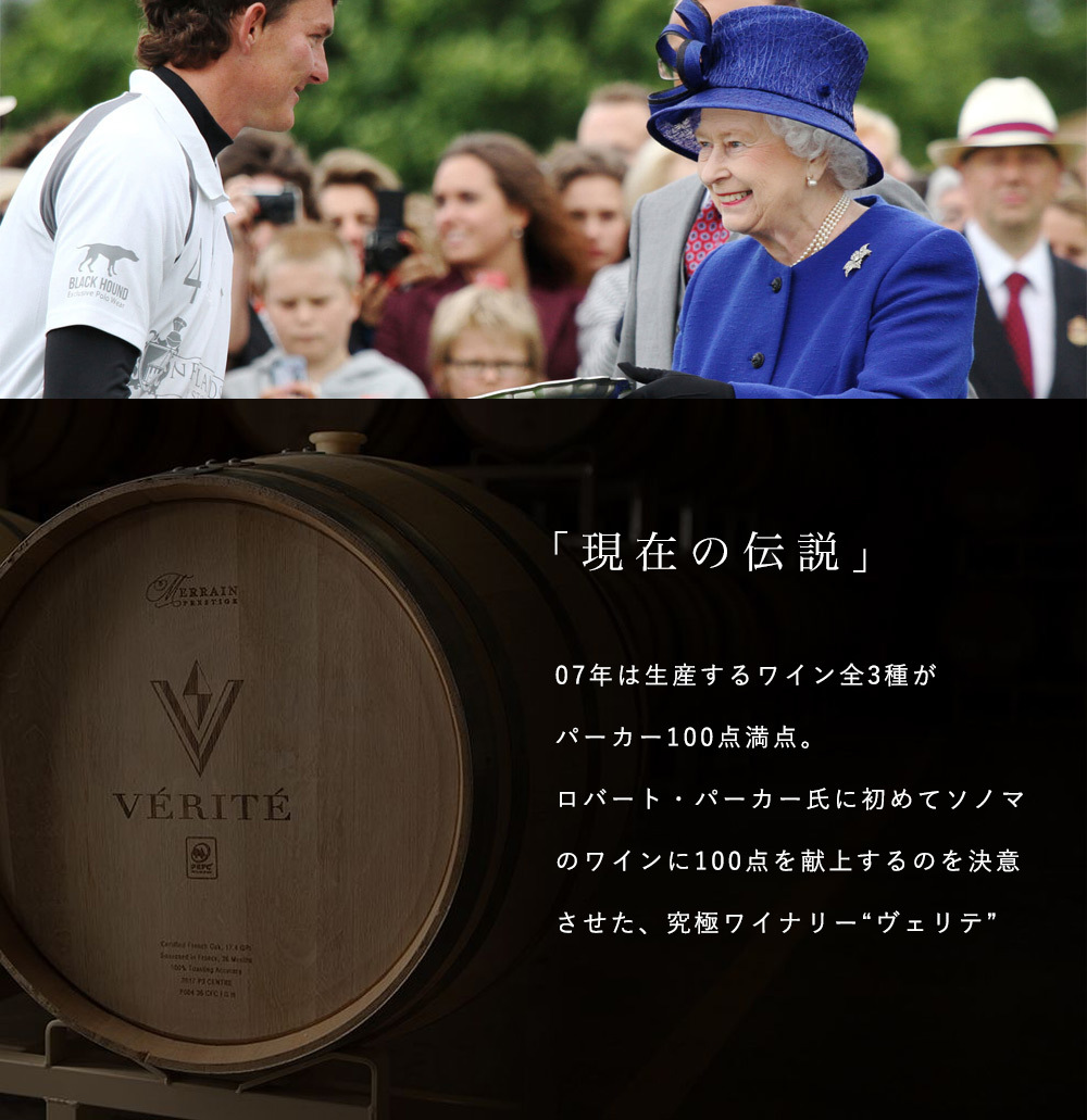 ![]() ![]() 2007年では生産するワインの全3種が100点(同一生産者の同一ヴィンテージ3種がパーカーポイント100点で300点満点)というパーフェクトを成し遂げ、2008年は3種の合計299点を獲得し、伝説とまで言わしめた究極のワイナリー。世界的なワイン評論家ロバート・パーカー氏が初めてカリフォルニア州ソノマ郡のワインに100点を付けたワイナリーとして有名です。 ![]() ![]() 1998年にピエール・セイヤン氏がカリフォルニアに設立しました。「それぞれの区画に育つ植物は大地からのメッセージである」というコンセプトの下、ぶどう畑を細かく200以上の区画に分け、狭い範囲における微細な気候や土壌などの環境条件の差異をワイン造りに反映させています。 フランス語で真実を意味するヴェリテは、伝統的な手法とニューワールドのぶどうを組み合わせて造られるワインです。それぞれのワインは畑の小さなブロックごとに収穫されたぶどうをブレンドしています。最新の注意を払って栽培される最高のぶどう品種、気候、土壌、そして醸造家のピエール・セイヤンのテクニックが組み合わされています。ピエール・セイヤンはこの方法を“droit du sol (right of the soil土壌からのメッセージ”)と呼んでします。 ![]() ![]() ソノマとナパを隔てるマヤカマス山脈の麓に位置するアレキサンダーヴァレーに位置。ワインメーカーは98年のファーストヴィンテージからフランス人のピエールセイヤン氏。以前は30年近くフランス各地でワイン生産を行い、幅広い知識とブドウと土壌の組み合わせを経験。ケンダル・ジャクソンの総帥、故ジェス・ジャクソン氏から「ここでペトリュスのようなワインを造れるか?」という問いに対し、ピエール・セイヤン氏はソノマの土地の多様性を確認していたので「もちろん。それ以上のものを」と答えたとか。現在では見事にそれを現実にした凄腕ワインメーカーです。 |