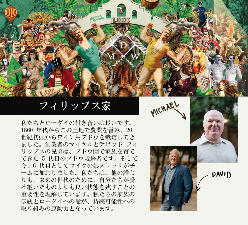 現在はマイケルの息子ケヴィンと娘メリッサが6代目としてワイナリーの指揮を執る。ローダイに320haを超える畑を所有し、これに加えて80ha超の契約畑でブドウを栽培している。ワイナリーはこの地におけるサスティナブル・ムーヴメントのパイオニアとしても知られており、全ての畑で認証を取得している。少量生産で法外な値段を売りに知名度を上げるブティックワインやカルトワインが多いカリフォルニアにおいて、これほどまでに真逆のスタイルで消費者の心を鷲掴みにしたワイナリーがあっただろうか。マイケル・デイヴィッドは「飲まなければ損をする」と断言できるワイナリーだ。
