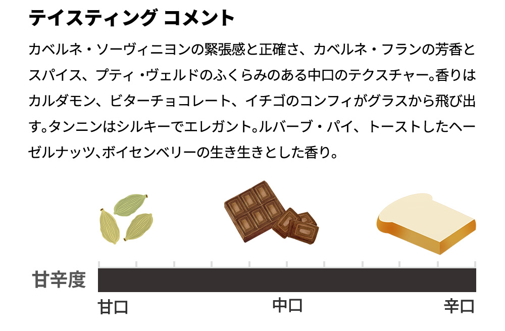 【ブドウの品種】カベルネ・フラン50%、カベルネ・ソーヴィニョン40%、プティ・ヴェルド10%