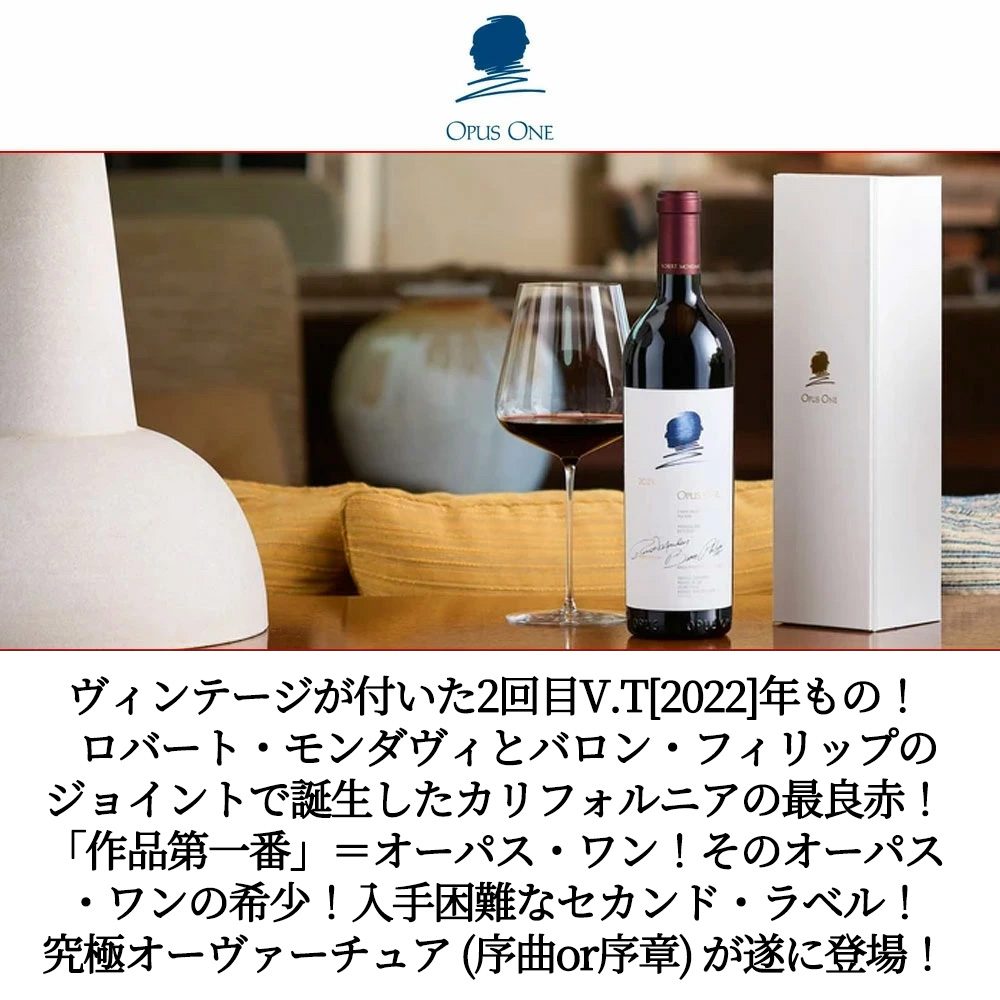 【商品名】オーパス・ワン・オーヴァーチュア(オーヴァチュア)[2022]年・(ヴィンテージが付いたオーパス・ワンの希少なセカンド・ラベル)・カリフォルニア・ワイン・アルコール度数14.5%・裏ラベルにボトルIDナンバー入り【英名】OVERTURE 2022 (OPUS ONE) Oakville California