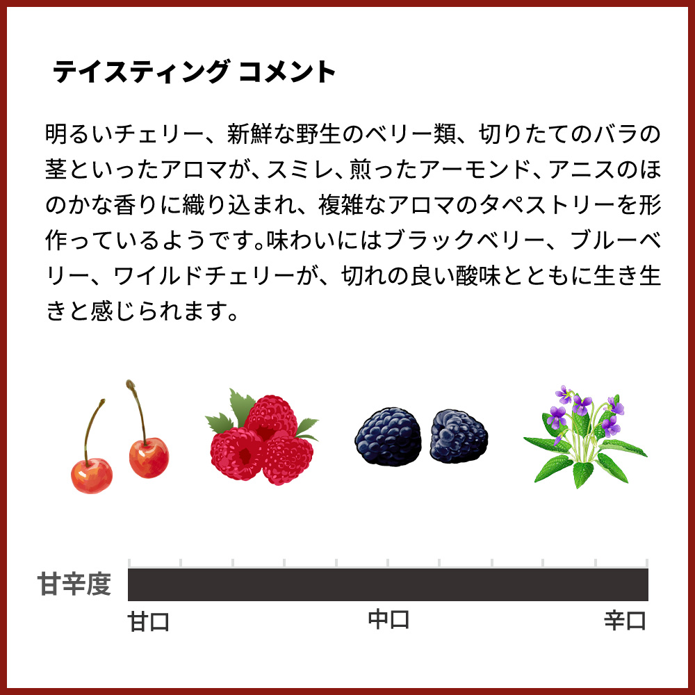 【ブドウの品種】カベルネ・ソーヴィニヨン94%、カベルネ・フラン3%、メルロー1.5%、マルベック1%、プティ・ヴェルド0.5%