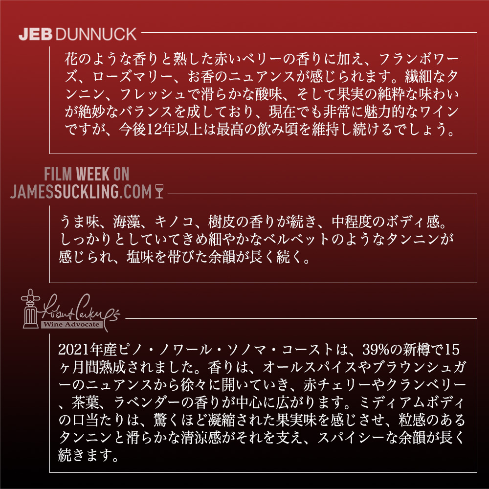 【生産地】アメリカ/カリフォルニア/ソノマ/ロシアン リヴァー ヴァレー ピノ ノワール