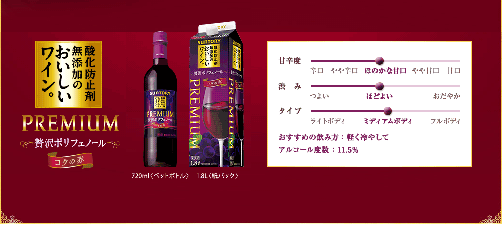 酸化防止剤無添加のおいしいワイン。 贅沢ポリフェノール (コクの赤) 1.8L 紙パック (日本 赤ワイン)