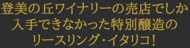 登美の丘のリースリングイタリコの特長は、リンゴや柑橘、桃のような果実を思わせる更やかな香りの中に、僅かに白い花のような香りも感じられる。口当たりはソフトで、優しい甘みと酸味のパランスがよく、ふくよかでたっぷりとした味わい。 登美の丘ワイナリーの白ワインは辛口が多い中、やや甘口のリースリング・イタリコは味わいの多様性を楽しむことができる貴重な存在です。