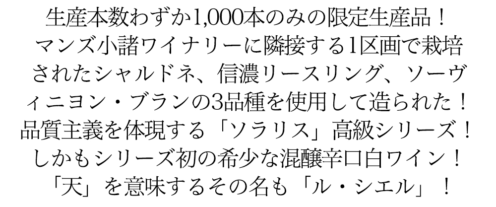 ソラリス ル シエル 2022年 長野県マンズ小諸ワイナリー元詰 蔵出し品 限定生産本数わずか1000本のみ 白ワイン 750ml