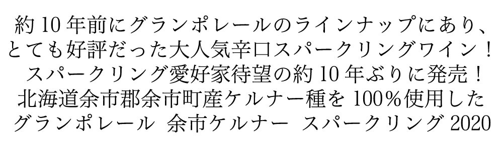 グランポレール 余市 ケルナー スパークリング 2020 日本ワイン 北海道余市郡余市町産ケルナー種100% やや辛口 発泡性 600ml 白 辛口