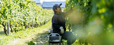 「私たちの手で、北海道余市町登町のワイナリーから世界へ」東京から北へ約800km、北緯43度。4km北に日本海を望み、三方を山に囲まれ、山から海へ南北にまっすぐ貫く2つの川(余市川、登川)が開いた谷状の地形の土地にワイナリーがあります。総面積16.2ha。