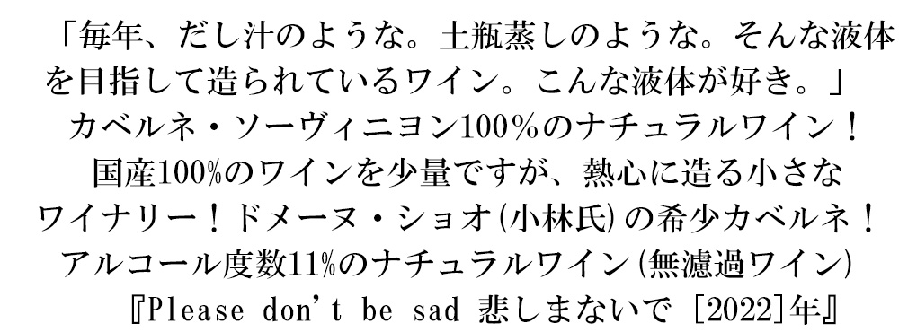 Please don't be sad 悲しまないで 2022 年 ドメーヌ ショオ(小林ワイナリー) RWG×AMZプレゼンツ