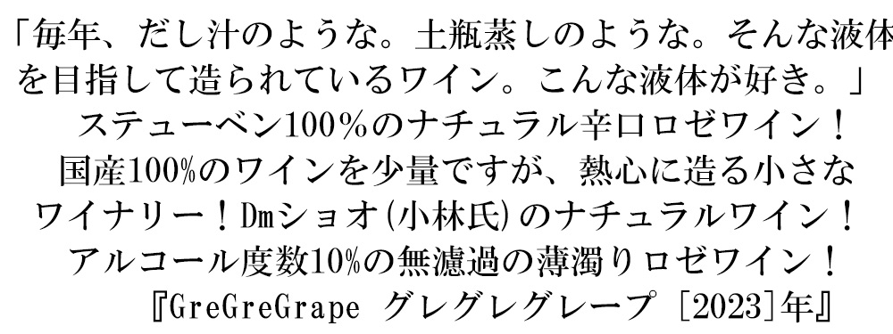 GreGreGrape グレグレグレープ 2023 ドメーヌ ショオ(小林ワイナリー) ロゼ 辛口 アルコール度数10% 山形県産ステューベン100%<br>GreGreGrape 2022 Domaine Chaud