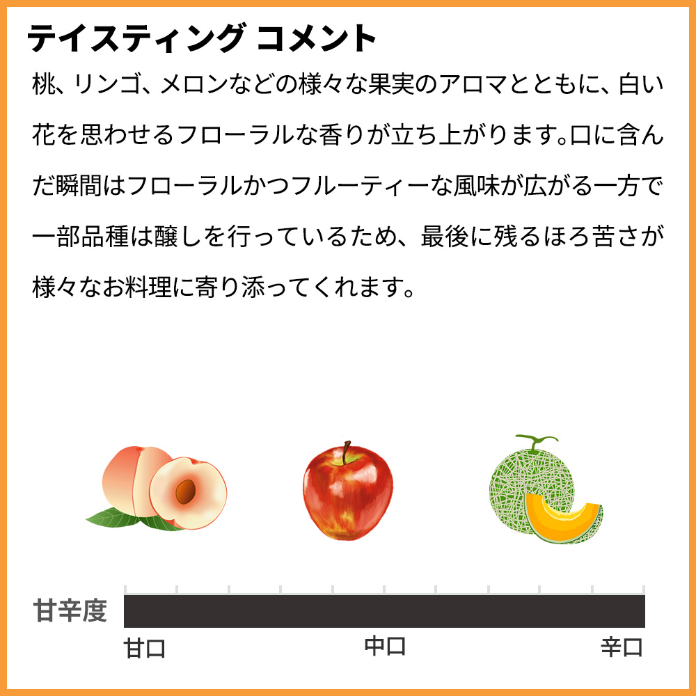 【ブドウの品種】ピノ・グリ、トラミーナ、ピノ・ブラン、ミュスカ、シャルドネ、ピノ・ノワール、ムニエ、リースリング、ゲヴェルツトラミネール、オーセロワ、メルロー、ドルンフェルダー
