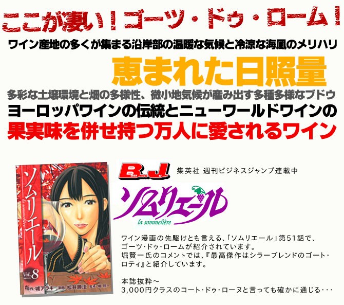 | ■ワインについて | 南アフリカフルボディ赤ワイン!シラーファン!北部ローヌファン!コート・ロティファン大注目!漫画ソムリエールにでも絶賛!こだわりのフルボディボ辛口赤ワイン!イギリス「デカンタ誌」大絶賛!南アフリカのTOP生産者“フェアヴュー”が“ゴーツ・ドゥ・ローム”の成功でなんとシラー98%、ヴィオニエ2%で造り上げたその名も“ゴート・ロティ”。フランスのコート・ロティを文字って名前もストーリーもパロディ!アメリカで一番売れている南アフリカのブランドから、胡椒やクローヴのアロマ!と柔らかなオーク香。肉つきのよいストラクチャーとリッチかつ果実味が前に現れた究極シラー フルボディ赤ワインが少量入荷! |