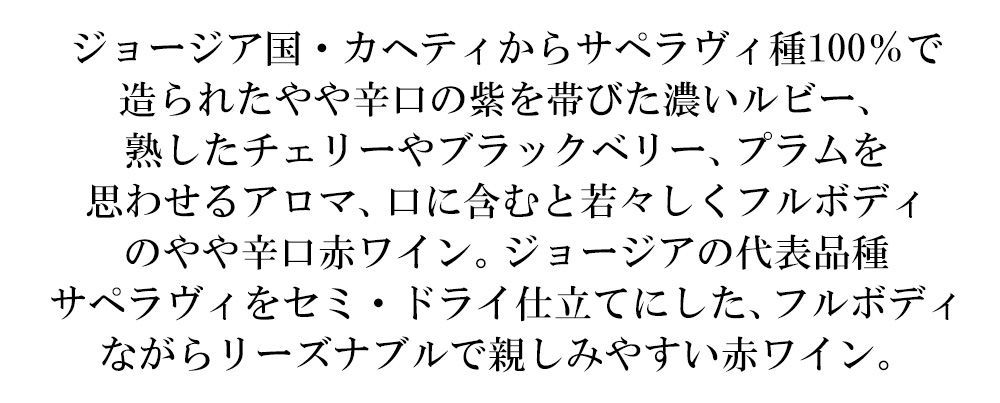 【生産地】ジョージア・カヘティ州 サペラヴィ種100%