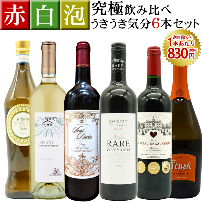 【送料無料】スタッフ超厳選!コスパ抜群!赤 白 泡 究極飲み比べうきうき気分6本セット【smtb-k】 ワインセット