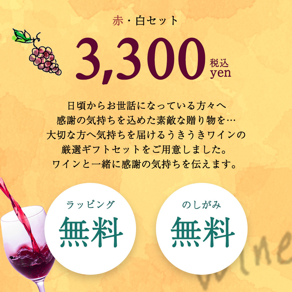 贈り物に うきうきワインのギフトセット 赤ワイン&白ワイン 3000円セットB (箱 ラッピング のし紙無料)のレビュー