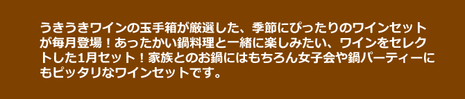 うきうきマンスリーワインセット 1月はあったかいお鍋料理にぴったり!うきうきワインの玉手箱厳選1月セット