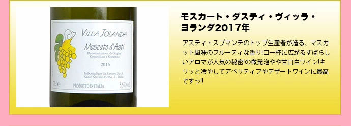 【ワイン名】イタリアの風に乗って!!うきうき気分♪♪女性に大人気やや甘口モスカート4本セット!